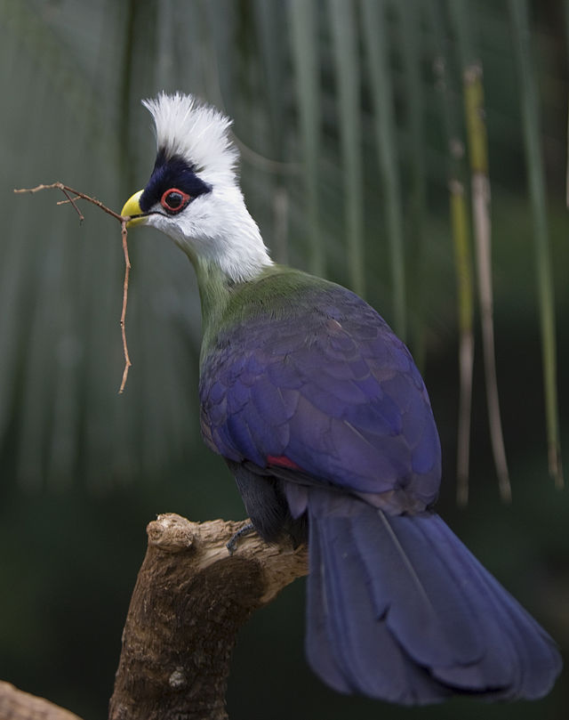 白冠蕉鹃(英文名:White-crested Turaco,学名:Tauraco leucolophus),是蕉鹃目蕉鹃科冠蕉鹃属的鸟类。美丽的冠蕉鹃属鸟类,以纯白色头部、眼上方黑色标记、深蓝色翅膀和尾巴、绿色背部和下体为显著特征。广泛分布于尼日利亚东部至肯尼亚西部的河流森林和木林地带。