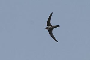 区别辨识:与太平洋雨燕的区别在于暗背雨燕缺乏白色臀部,喉咙斑点模糊且条纹更重,尾下覆羽全黑。与普通雨燕相比,暗背雨燕上体更黑,尾叉更深,脸部无淡色区域,尾巴总体较长。