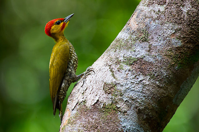 黄喉啄木鸟(英文名:Yellow-throated Woodpecker,学名:Piculus flavigula),是䴕形目啄木鸟科棕翅啄木鸟属的鸟类。广泛分布于南美洲的亚马逊雨林,包括哥伦比亚、委内瑞拉、圭亚那、苏里南、法属圭亚那、巴西、玻利维亚、秘鲁和厄瓜多尔等地。其显著特征是明亮的黄色喉咙,雄鸟的红冠更是引人注目。
