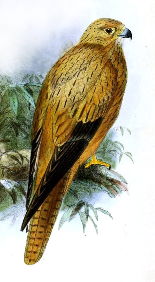 大黄眼隼(英文名:Fox Kestrel,学名:Falco alopex),是隼形目隼科隼属的猛禽,广泛分布于非洲北部的萨赫勒地区至埃塞俄比亚和肯尼亚北部,常见于干燥开阔地带的悬崖和岩石区。其最显著的特征是拥有长而尖锐的翅膀和尾巴,全身覆盖着深红褐色的羽毛,带有黑色细纹。